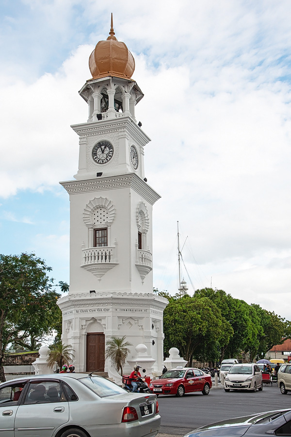 In Penang konnten wir den Ort endlich mal wieder direkt vom Schiff aus erobern. Die Hauptstadt George Town war fußläufig zu erreichen. Penang ist überwiegend von chinesischstämmigen Malaysiern bewohnt. Auch hier leben wieder verschiedenste Kulturen und Religionen eng beieinander. So liegen an der Kapitan-Keling-Road auf einer Strecke von nicht einmal 400 m die St. Georges Anglican Church, der Goddness of Mercy taoistische Tempel und die Kapitan Keling Moschee. Zunächst aber ein Bild von dem Fahrzeug der örtlichen Polizeistation: