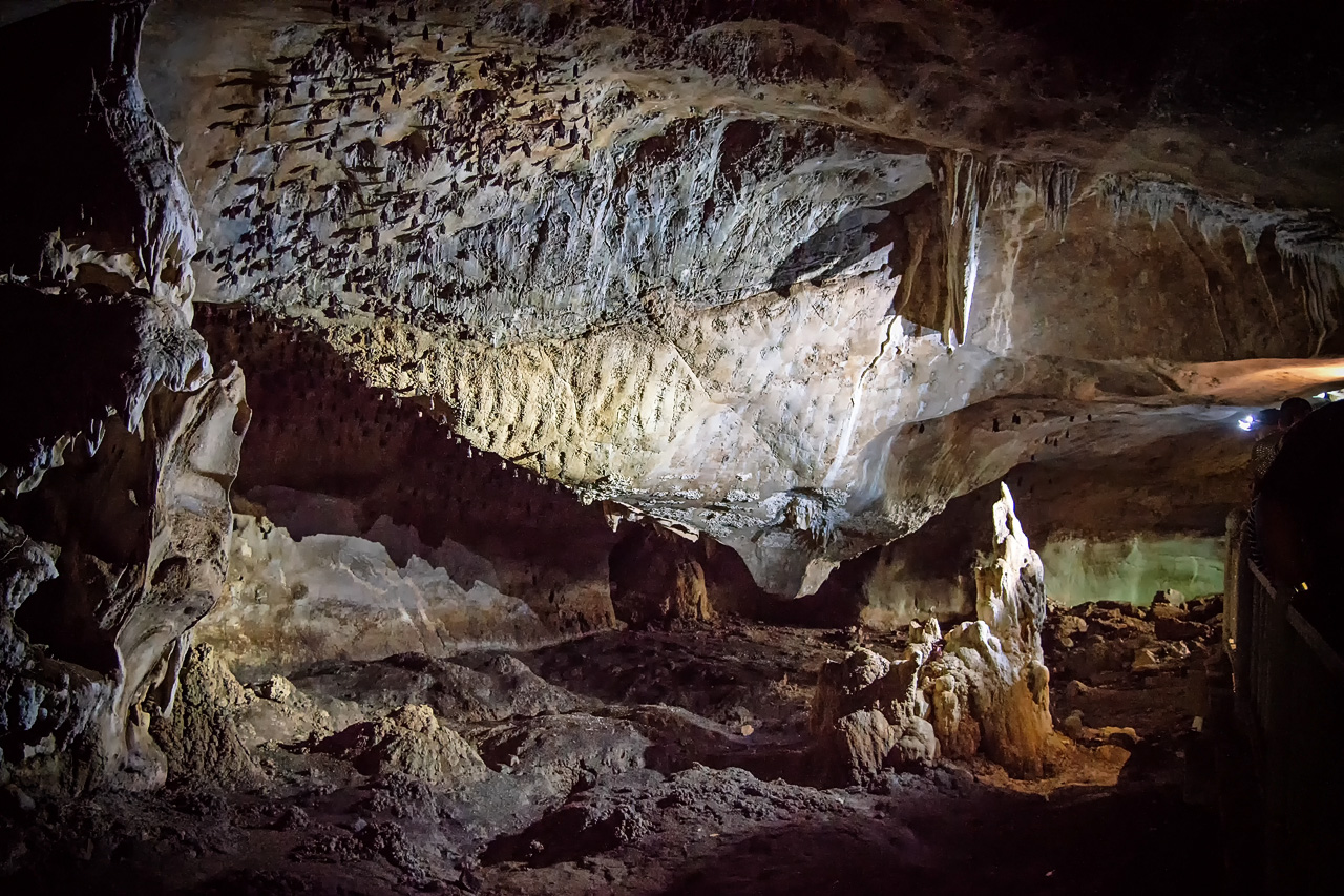 Den Abschluss der Mangrovenfahrt ist ein Besuch in einer kleinen Höhle mit zahlreichen Fledermäusen, die unter der Decke der Höhle hängen: