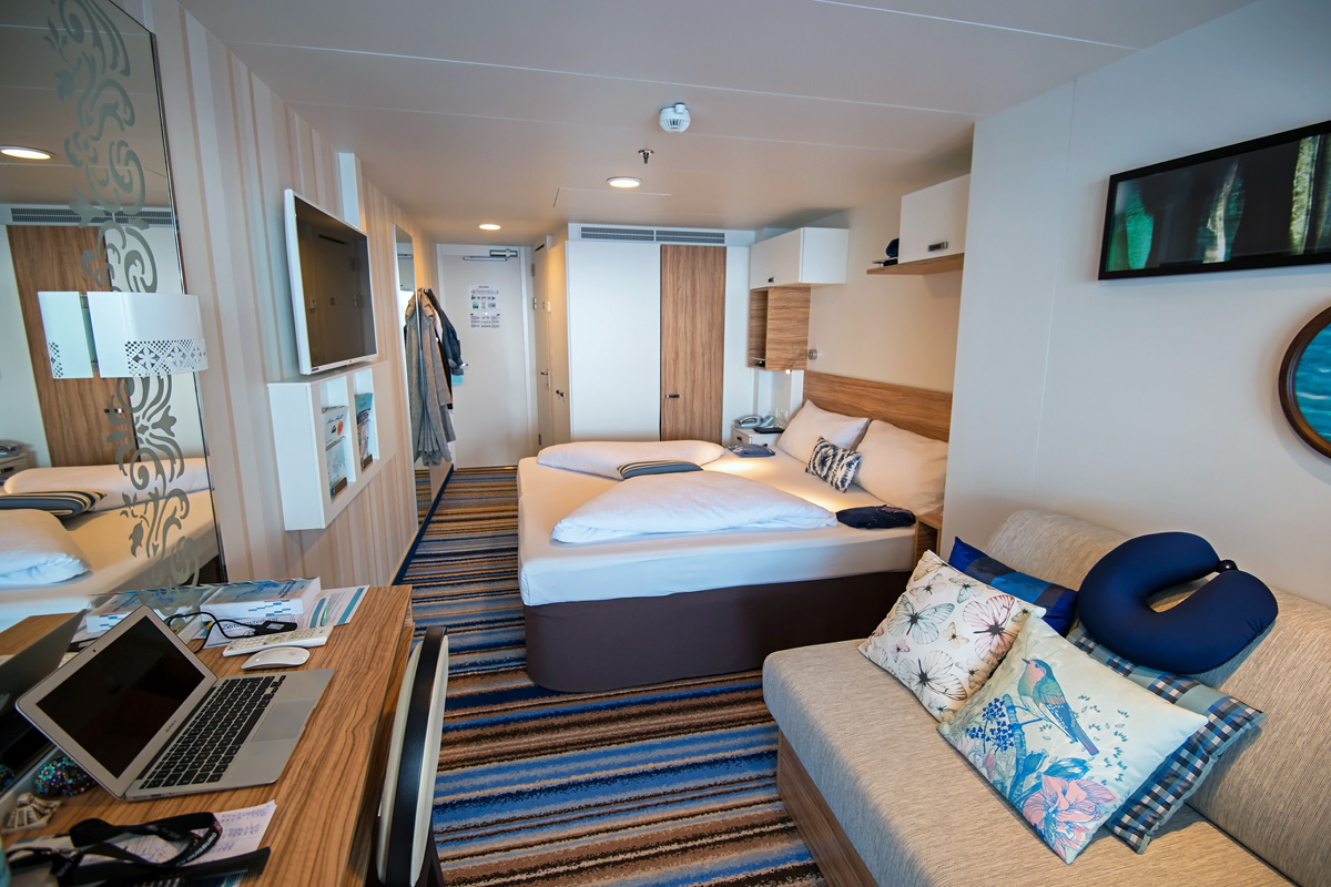 Heute war wieder Seetag. Wir sind auf dem Weg von Honduras nach Costa Rica. Zeit um ein paar Bilder vom Schiff zu machen. Zunächst ein Blick in unsere Kabine: