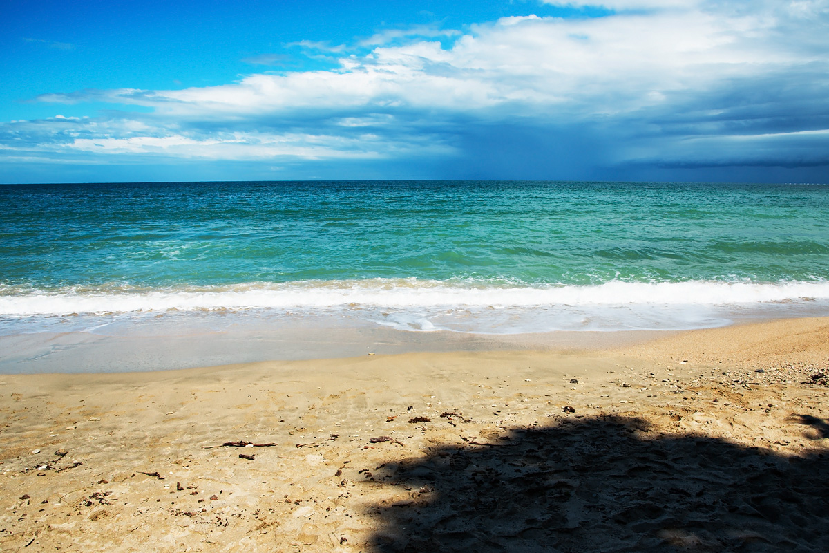 Der Strand direkt vor unserem Zimmer - bei Sonne sicher echt toll!