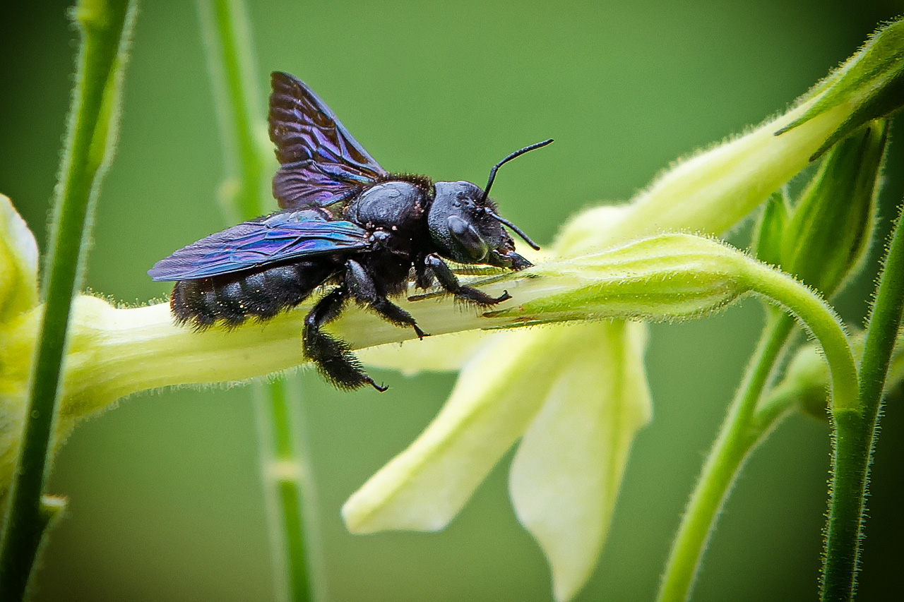in Holz anlegen. Sie ist schwarz mit metallisch glänzenden Flügeln. Auf jeden Fall ein riesen Brummer.