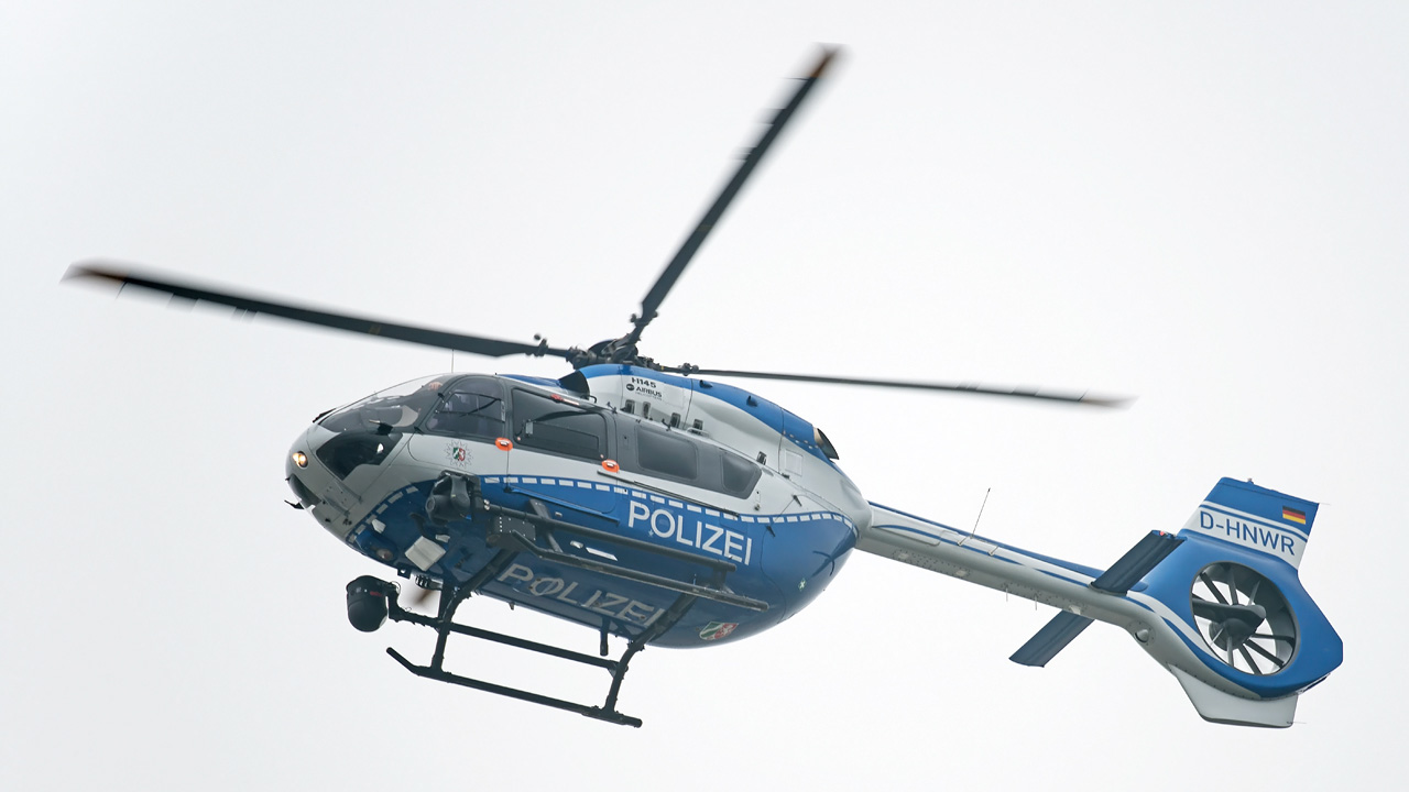 Auf dem Weg nach Duisburg, wo einige Demonstrationen stattfanden, schaute der Helicopter der Polizei vorbei: