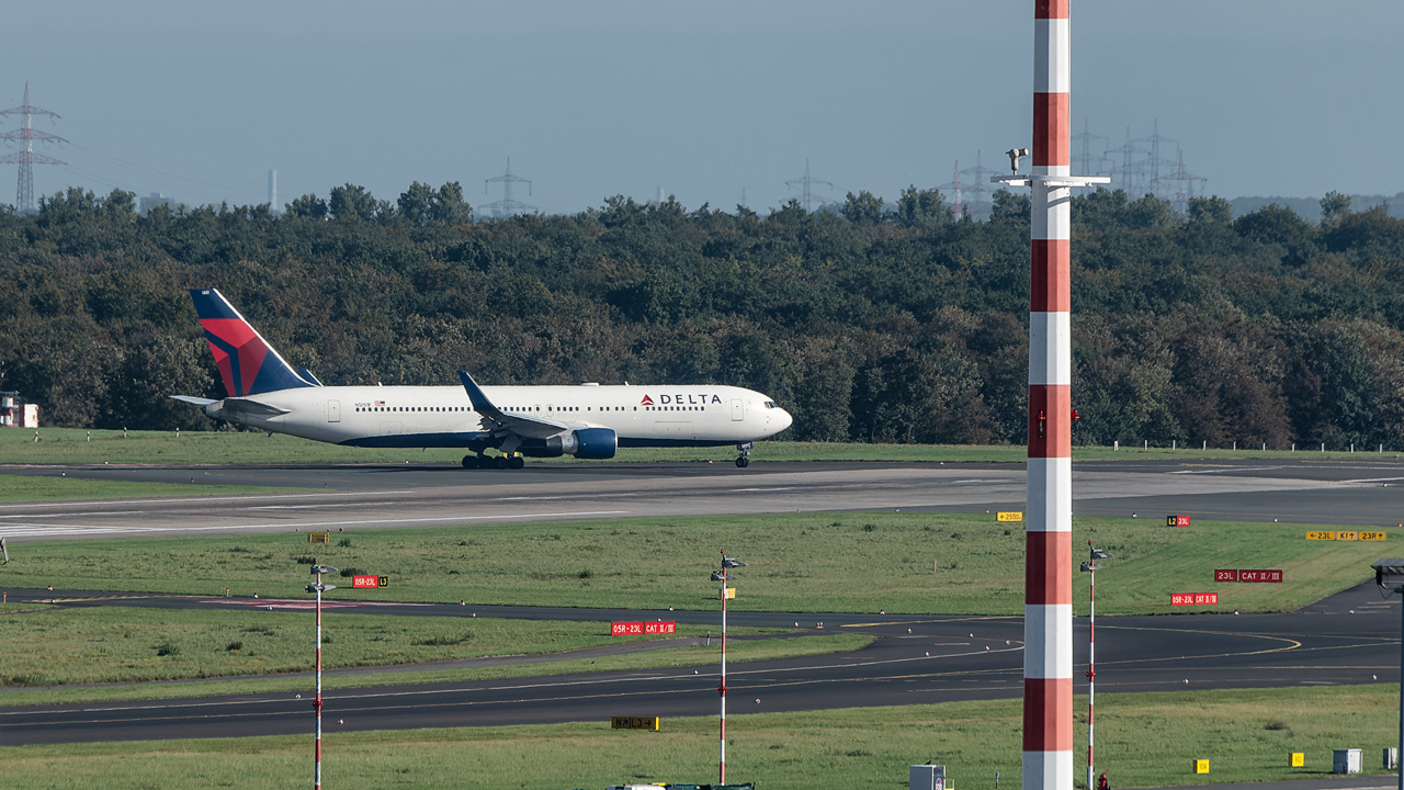 Dann geht die Delta raus, natürlich mit der speziellen Delta Schleife auf der Runway: