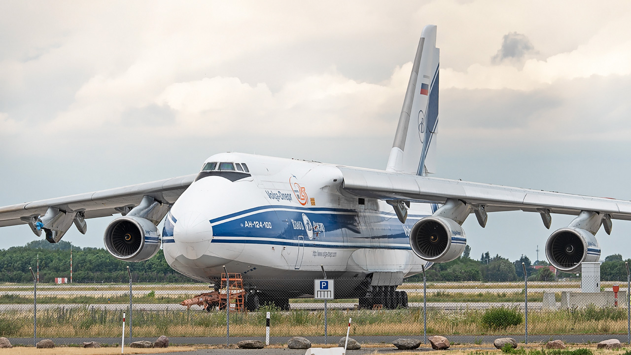 Hier geht es los mit den AN-124. Bei der ersten Maschine war das Triebwerk #4 demontiert: